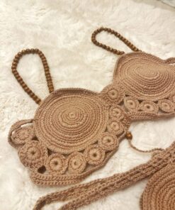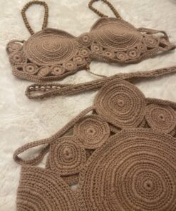 Descubra a elegância do trabalho manual com nosso conjunto exclusivo de crochê, composto por um top estilo biquíni e uma saia de cintura alta. Cada detalhe foi cuidadosamente confeccionado à mão, trazendo padrões circulares que simbolizam a harmonia e a continuidade.