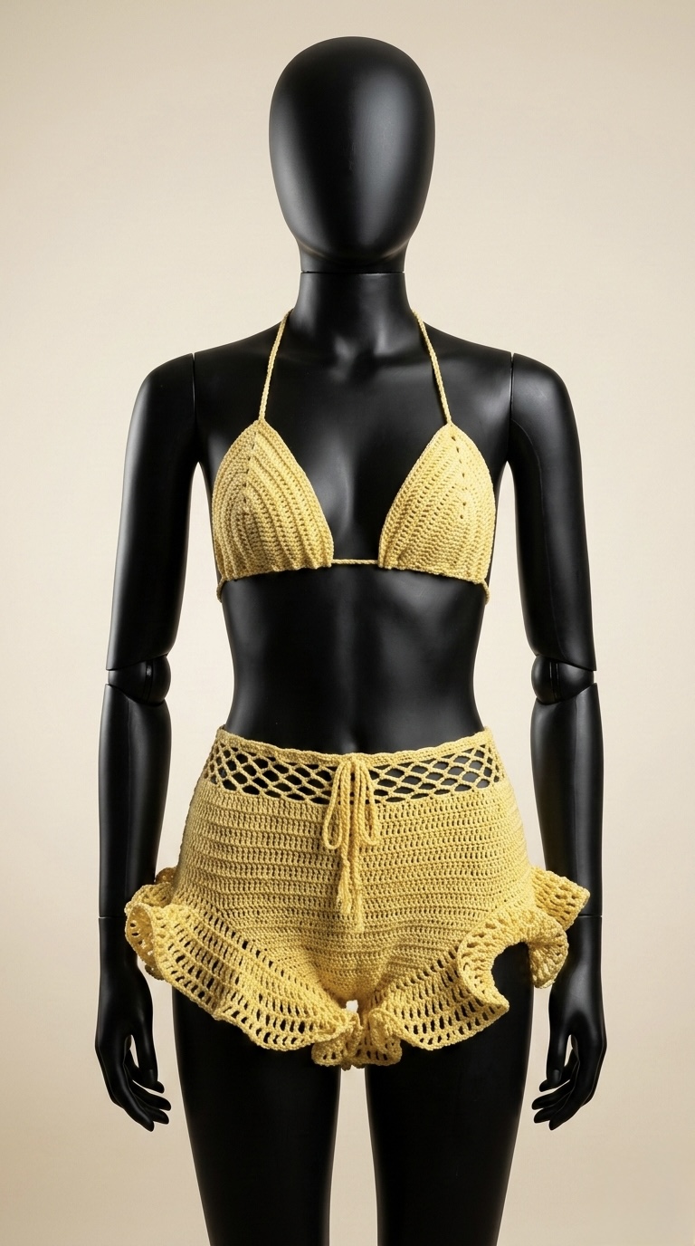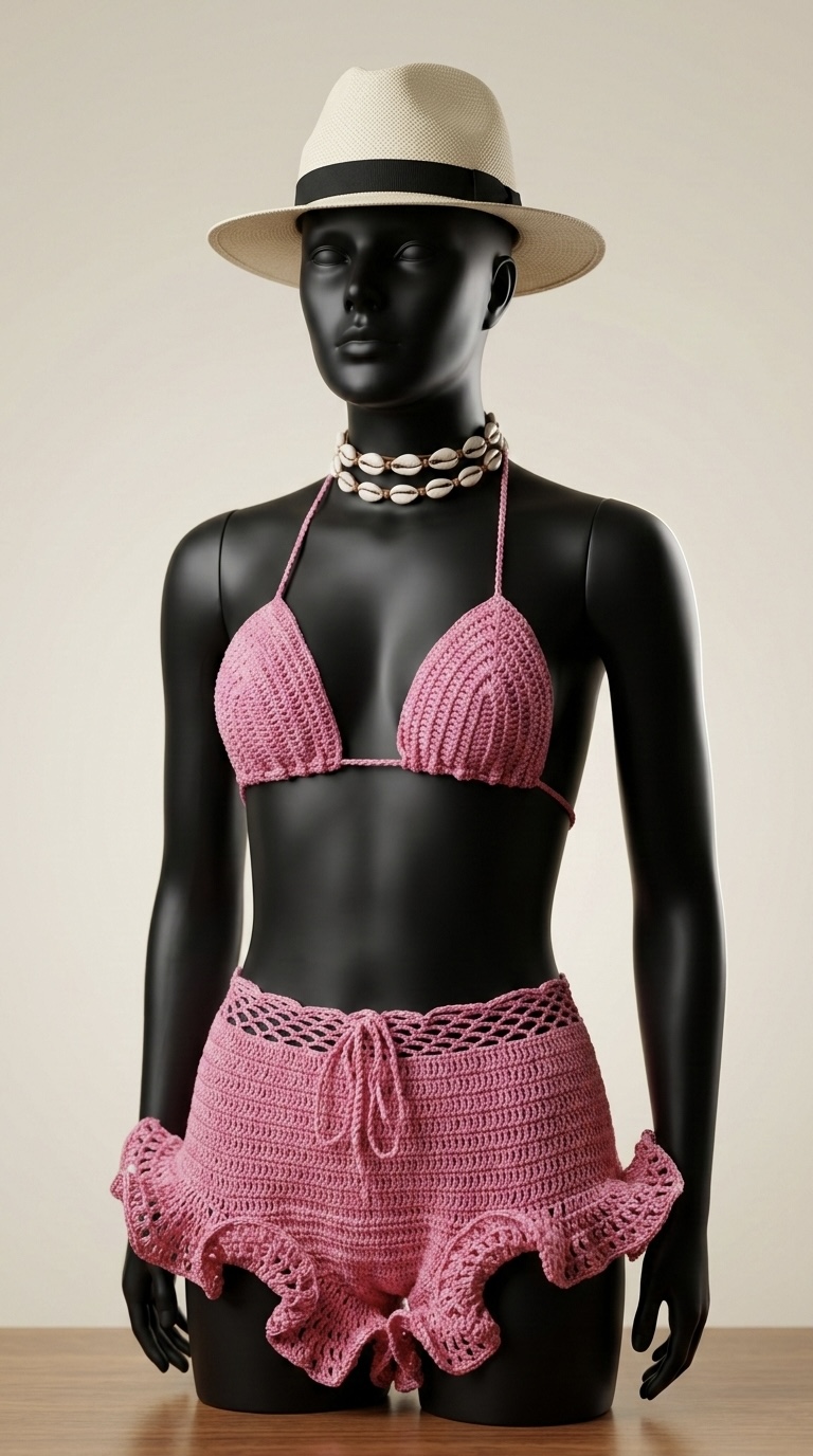 Produzido em crochê artesanal com modelagem impecável, ele valoriza o corpo com leveza, conforto e um toque handmade exclusivo.