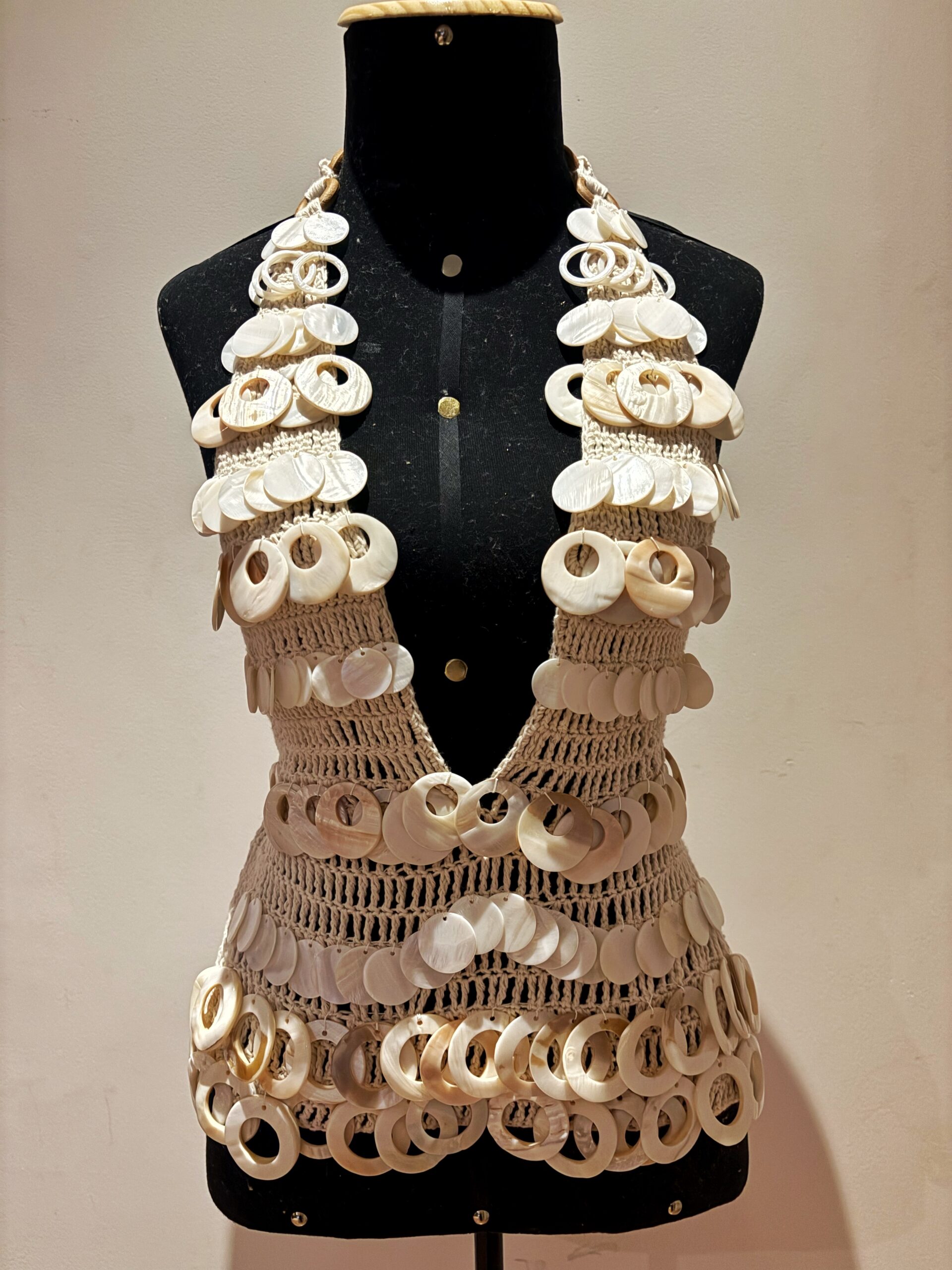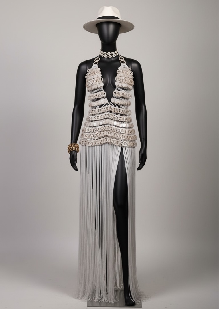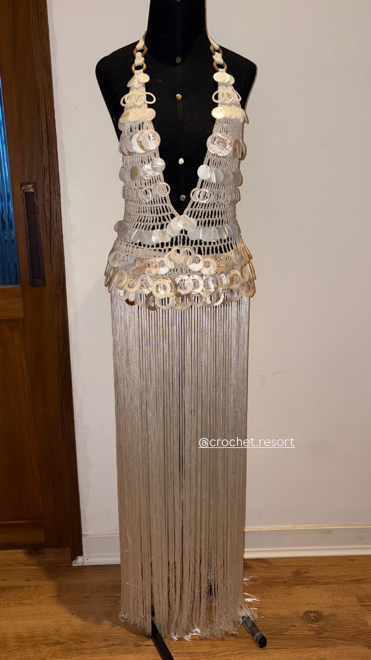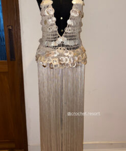 Prepare-se para brilhar com o Conjunto Celebrate, uma obra-prima em crochê bordada à mão com madrepérolas naturais, criado para mulheres que amam elegância com personalidade. A blusa de sobreposição, possui decote profundo e modela o corpo com sensualidade na medida, enquanto a saia com fenda e franjas longas traz movimento hipnotizante a cada passo — simplesmente inesquecível. Ambas as peças podem ser usadas separadamente em outras ocasiões.