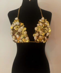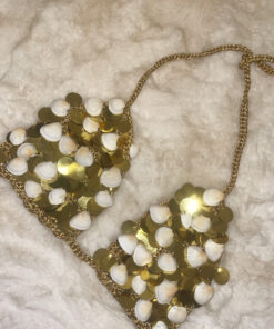 Mergulhe no espírito do verão com esse top artesanal que é a cara das praias mais paradisíacas! Feito à mão com conchas naturais e grandes paetês, esse top é um tributo à beleza da natureza e à elegância artesanal.