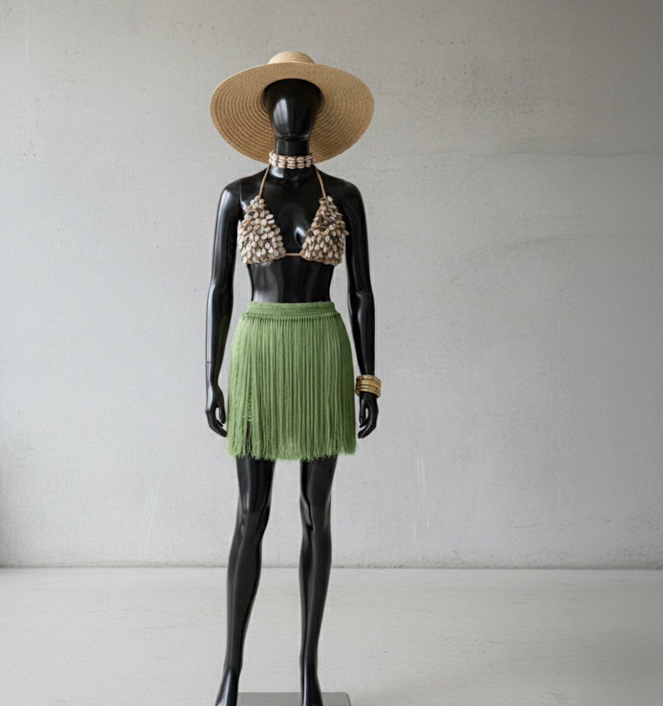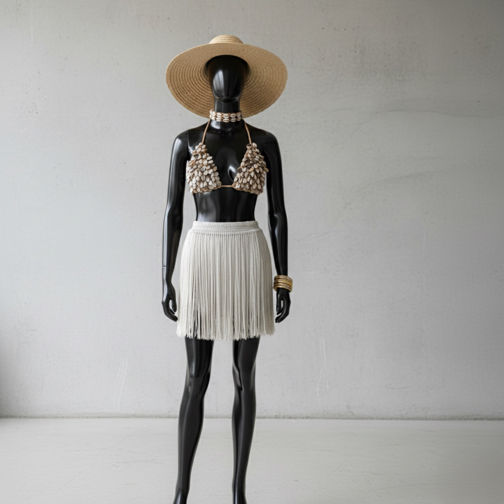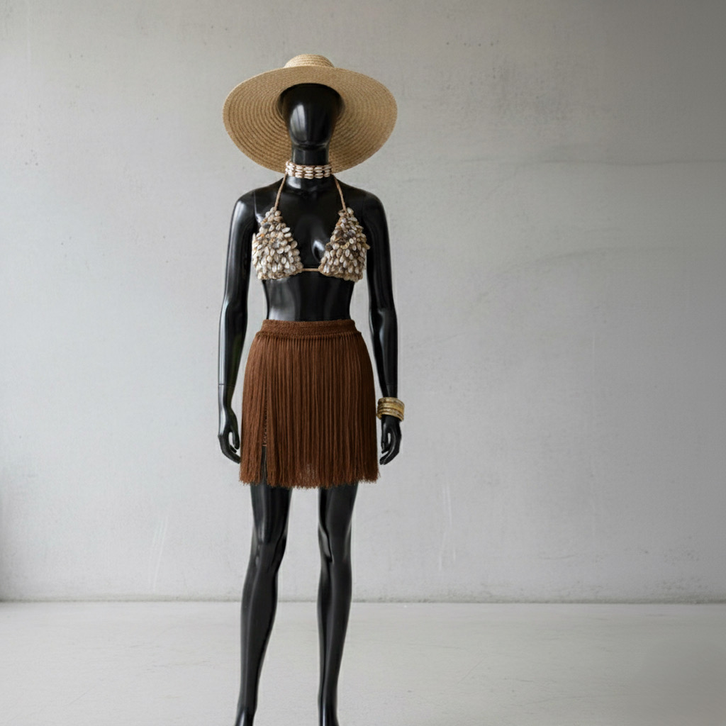 Deixe seu estilo fluir com a Saia Caraiva, uma obra-prima feita em crochê com fios de seda que proporcionam um caimento leve e delicado. Com franjas longas que acompanham cada passo, essa peça é a definição de elegância e autenticidade, trazendo um charme boho chic irresistível para qualquer look.