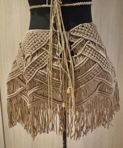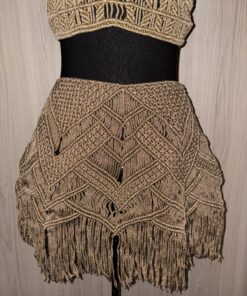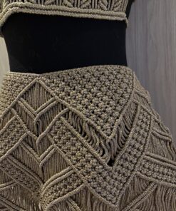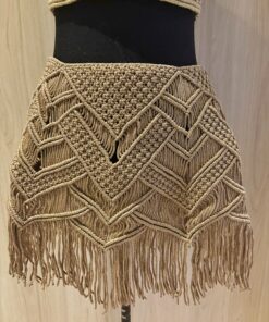 Seja o centro das atenções com a Saia Fiesta, uma verdadeira joia do trabalho artesanal. Criada com a técnica tradicional de macramê, cada detalhe é feito à mão, demandando horas de trabalho minucioso para garantir um acabamento impecável e um design que exala sofisticação e exclusividade.