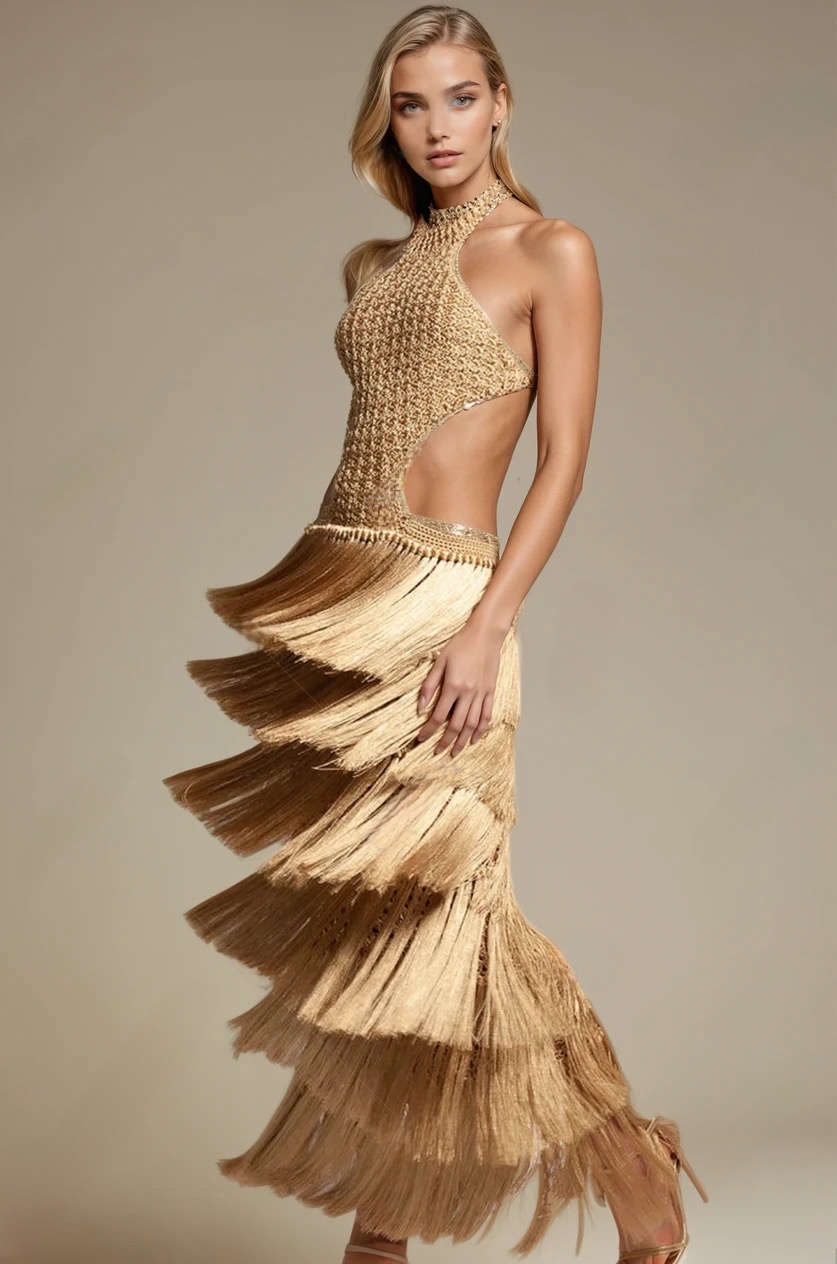 Feito em crochê com fio de seda de alto brilho, o vestido Capri é uma verdadeira obra de arte que valoriza cada detalhe do corpo feminino. Sua estrutura leve e fluida revela um caimento impecável, enquanto as camadas em espiral trazem um movimento hipnotizante a cada passo — um convite ao olhar e à admiração.