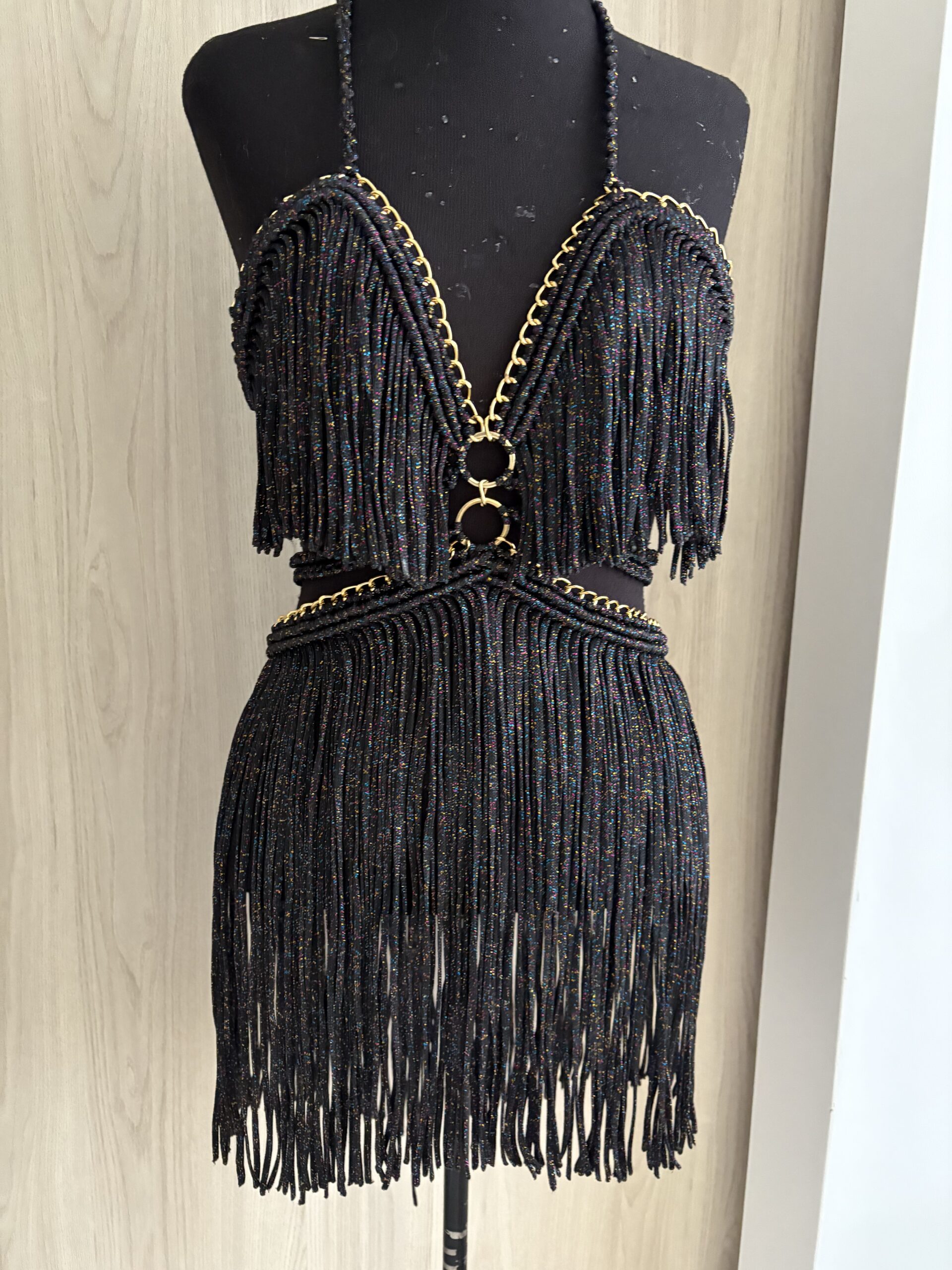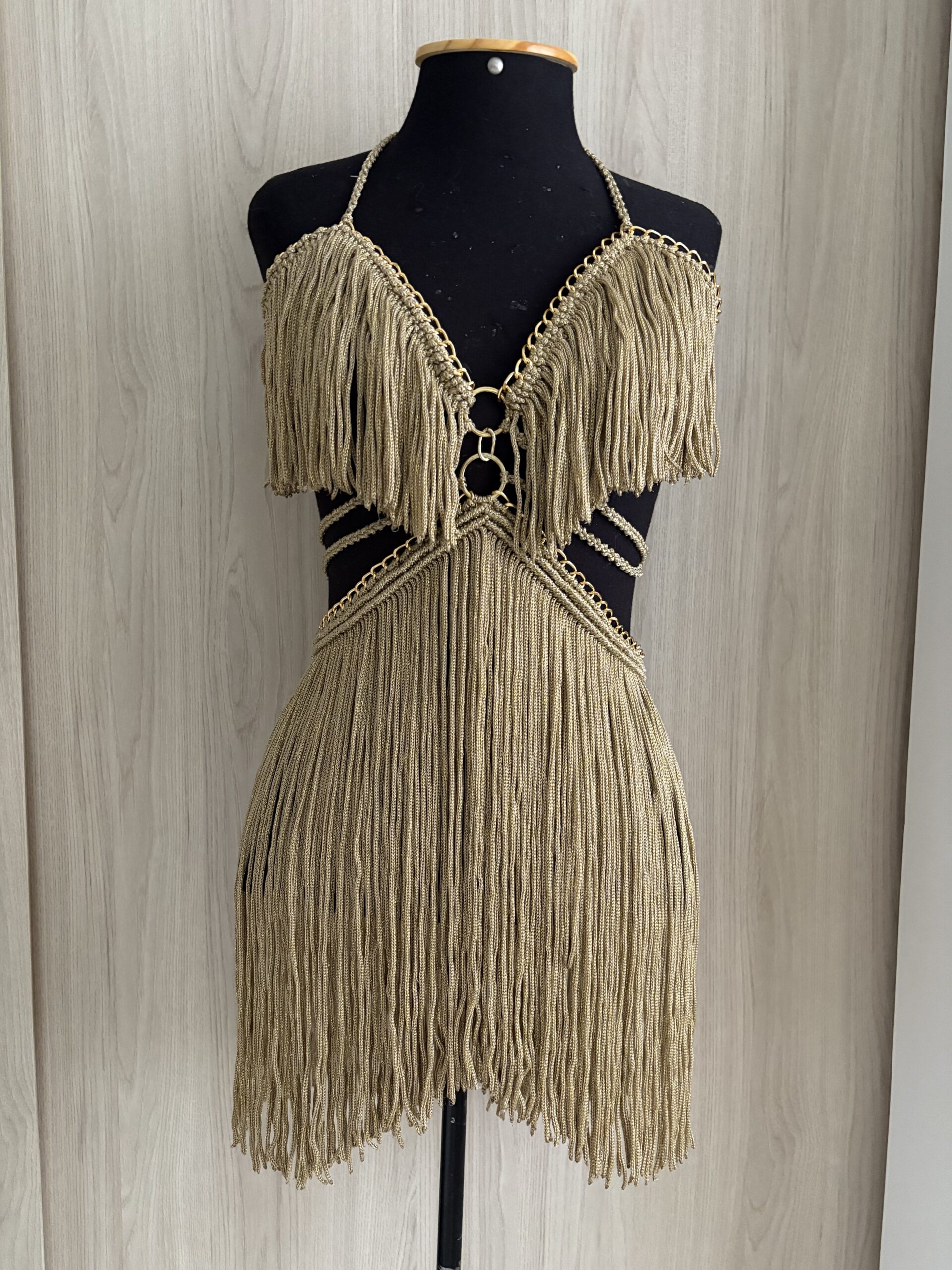 Ideal para festas boho chic, rodeios, baladas e eventos especiais, esse vestido combina elegância e sensualidade com suas franjas marcantes e detalhes dourados. Use com botas para um toque western glam ou com saltos para uma produção mais sofisticada.
